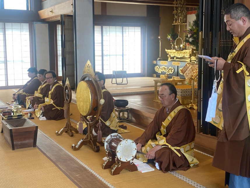 法要開始に伴い出勤僧侶の入場・作法・退場に合わせて平調の五常楽急・越殿楽・鶏徳・陪臚の4曲を奏楽させていただきました。